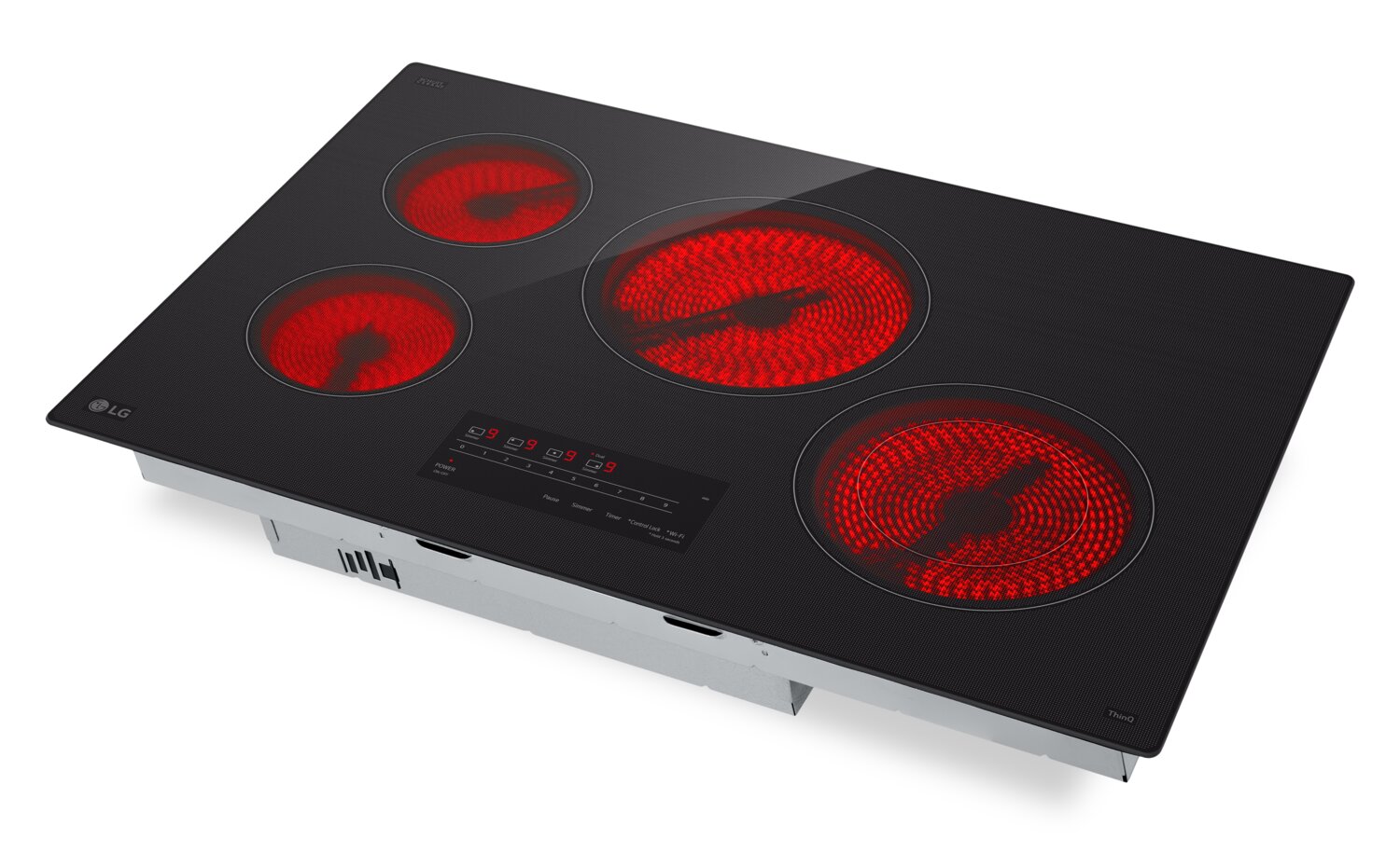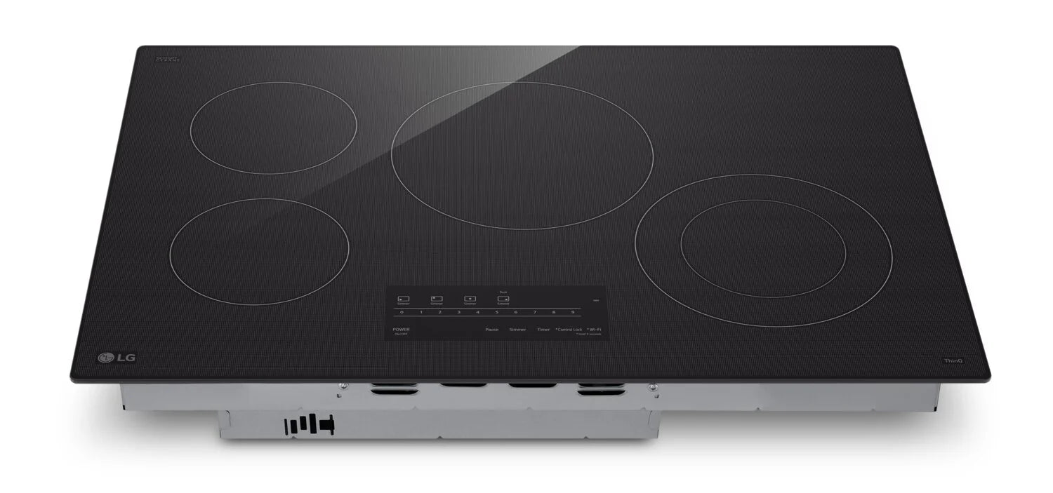 Turn everyday meals into something more with this LG electric cooktop. Four elements give you the space to sauté, boil and simmer all at once, while the UltraHeat dual element rapidly brings water to a boil or gently holds a true simmer with impressive precision. Seamless SmoothTouch® controls are intuitive to use and just as easy to clean. Plus, with ThinQ® technology, you can control your cooktop from your phone or sync it with your smart LG hood (sold separately) for a kitchen that truly works in harmony.