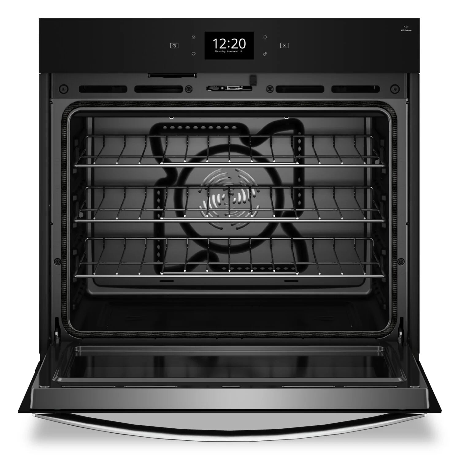 Smart Capabilities: When you’re busy elsewhere, use your smartphone to get dinner started by remotely preheating the oven. Or, use your compatible voice-enabled device to adjust the cook time and temperature with a voice command. 8-in-1 Wall Oven with Air Fry: Cook however you want with eight cooking modes in one wall oven – Air Fry, Frozen Bake™, Keep Warm, Broil, Convection Broil, Bake, Convection Bake and Convection Roast provide incredible culinary flexibility. Air Fry Mode: Skip preheating and air fry chicken nuggets, wings, fries and more to get crispy results right in your oven using less oil than traditional frying. True Convection with Third Heating Element: Bake multiple dishes using a third heating element and a fan that distribute hot air more evenly around the oven. Self-Clean and Steam Clean: The high temperature self-clean cycle removes various soils from the oven, while steam clean uses water to take care of light spills. Frozen Bake Technology: Skip preheating and prepare frozen favourites like pizza in fewer steps with preprogrammed settings that automatically adjust cooking times. Assisted Cooking: Assisted Cooking cycles calculate and set the ideal cooking time and temperature for common foods like casseroles, meat, fish, vegetables, pizza and select baked goods. Multi-Step Cooking: Connect your smartphone or tablet to Wi-Fi with the Whirlpool app to send multiple cooking instructions to your appliance at once, and the temperature will automatically adjust based on the recipe you enter. |