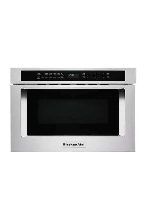 Give your kitchen more room for creativity with an ingenious 24-inch top-loading KitchenAid microwave oven drawer. Ideal for open kitchen designs, it installs into your wall or island, saving you valuable countertop space for food preparation. Opening and closing the drawer is simple even when your hands are full with one-touch opening controls. Sensor cooking functions deliver precise control, and 950 watt cooking power and 1.2 cubic feet of capacity handle a variety of foods with ease.