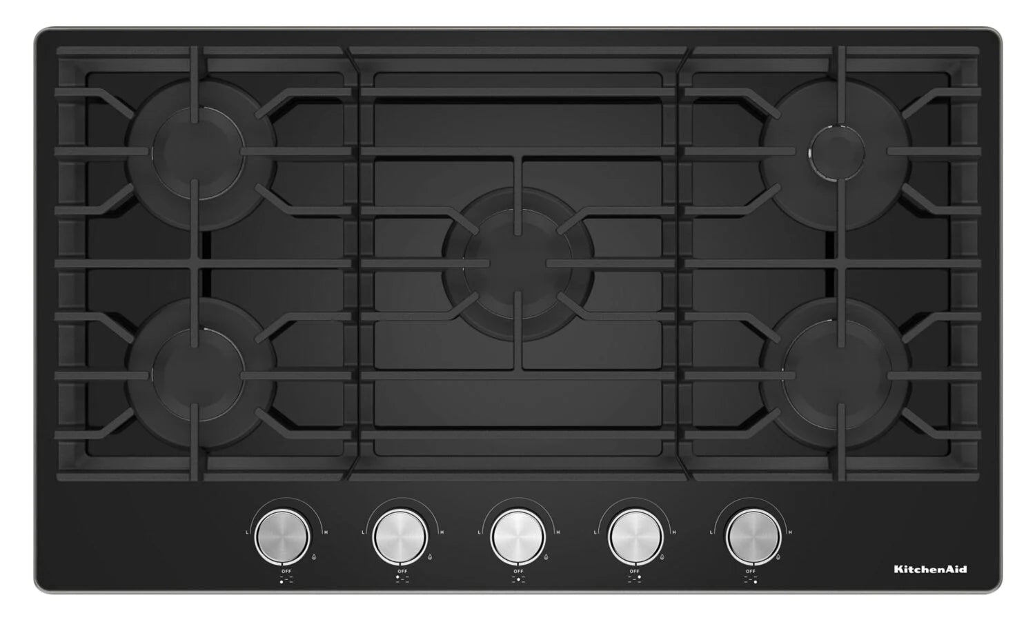 Most Powerful 36" Gas-on-Glass Cooktop: With 56,200 total BTU through five individual burners, this cooktop is the most powerful gas-on-glass cooktop available. 18,000 BTU Burner: The central burner delivers the high heat you need to successfully sear, sauté, stir-fry and bring pots to a rolling boil. 5,000 BTU Simmer Burner: A flame sized for small saucepans manages low temperatures for simmering sauces until they look, feel and taste delicious. 9,100 to 15,000 BTU Multi-Purpose Burners: Get a variety of heating power with multi-purpose burners. Two 9,100 BTU burners provide medium heat for daily cooking, while the 15,000 BTU burner gives quick, high heat for boiling and searing. Easy-to-Clean Glass Top Surface: A glass top surface easily wipes to a reflective shine with just soap, water and a soft cloth. Dishwasher-Safe Metal Knobs: Professionally-inspired dishwasher-safe knobs are easy to clean and allow simple adjustment of cooktop settings, offering responsive, flexible control. Dishwasher-Safe Full-Width Cast-Iron Grates: Cast-iron grates are dishwasher safe and allow for smooth, easy movement around the cooktop. |