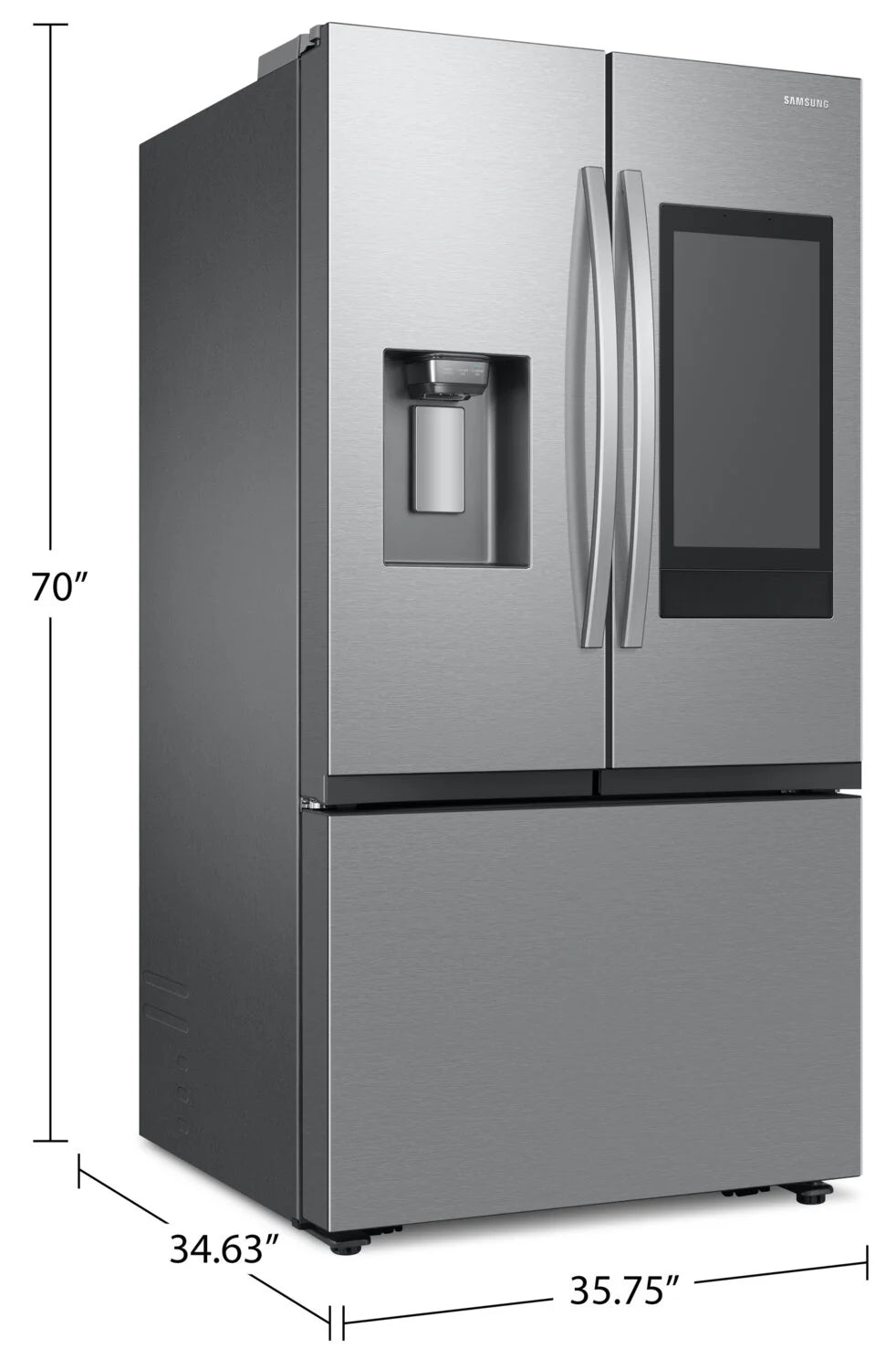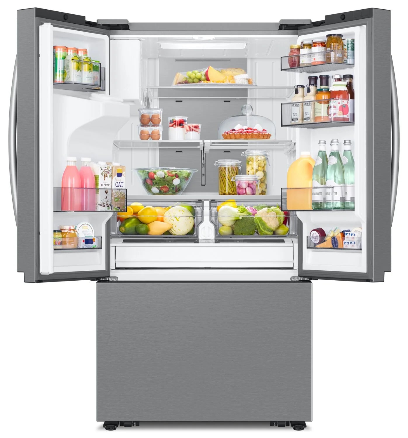 Family Hub: Family Hub lets you share pictures, stream music and videos and control your smart devices – all from the screen. See inside your fridge from anywhere, search recipes based on what you have on hand, plan weekly meals and send cooking instructions to your Samsung smart oven. Large Capacity: The incredibly spacious 30-cubic-foot capacity easily makes room for even your biggest grocery hauls. Dual Auto Ice Maker: Make sure you’re prepared for any occasion – the dual auto ice maker produces a large amount of both cubed ice and Ice Bites™, which chill drinks fast. IceMax™ Internal Ice Maker: The internal ice maker in the fridge creates curved ice and crushed ice, giving you even more options for every drink. SmartThings: Monitor and control the fridge from your smartphone using the SmartThings app. Change the temperature and get alerts if the door is left open – plus, monitor the energy consumption and let SmartThings Home Care notify you if any problems are detected. Metal Cooling: Stainless steel rear paneling helps retain cold air to maintain a consistent temperature throughout the refrigerator. All-Around Cooling: All-Around Cooling continually checks the temperature and circulates cool air through strategically placed vents to cool each compartment evenly from corner to corner. Slide-In Shelf: The slide-in shelf can be pushed back to create more room for storing tall bottles, large containers and more. |