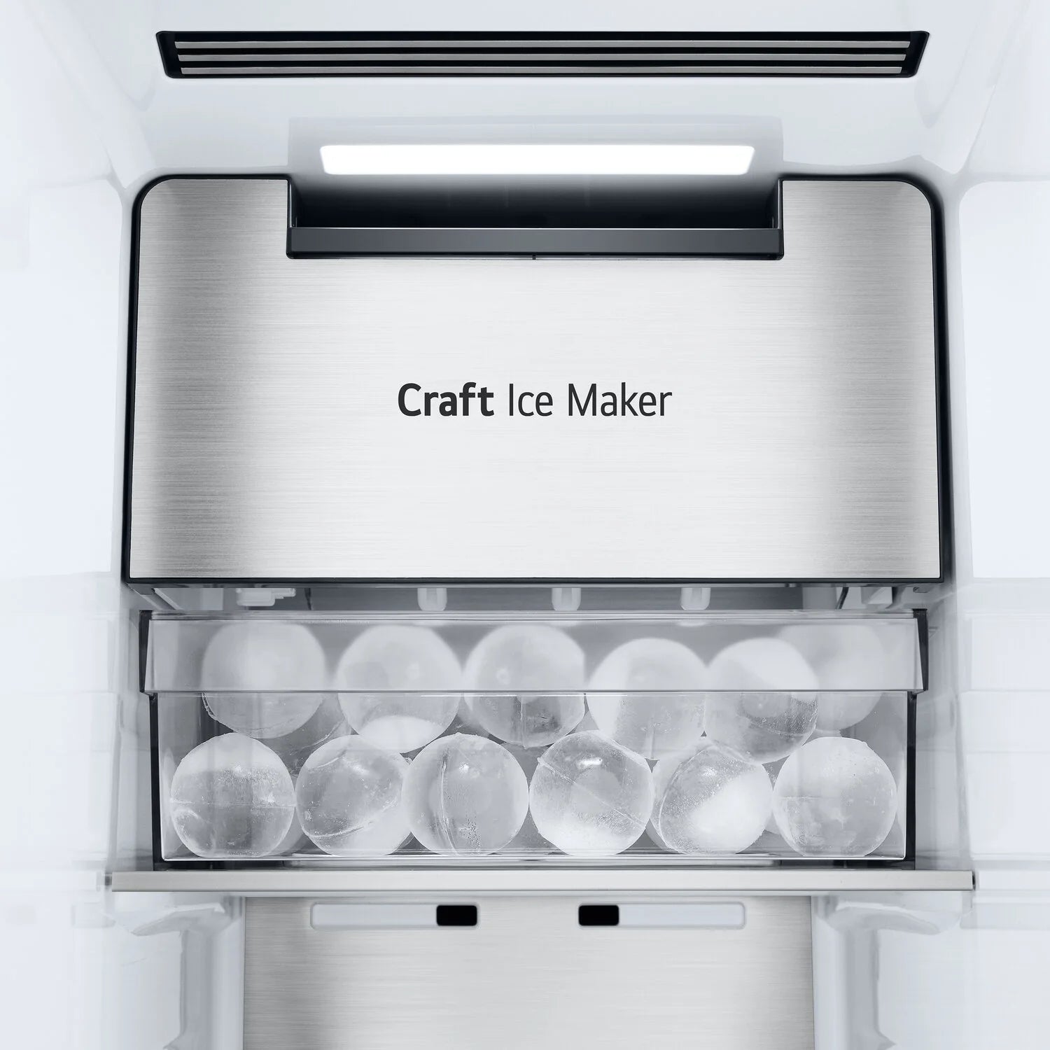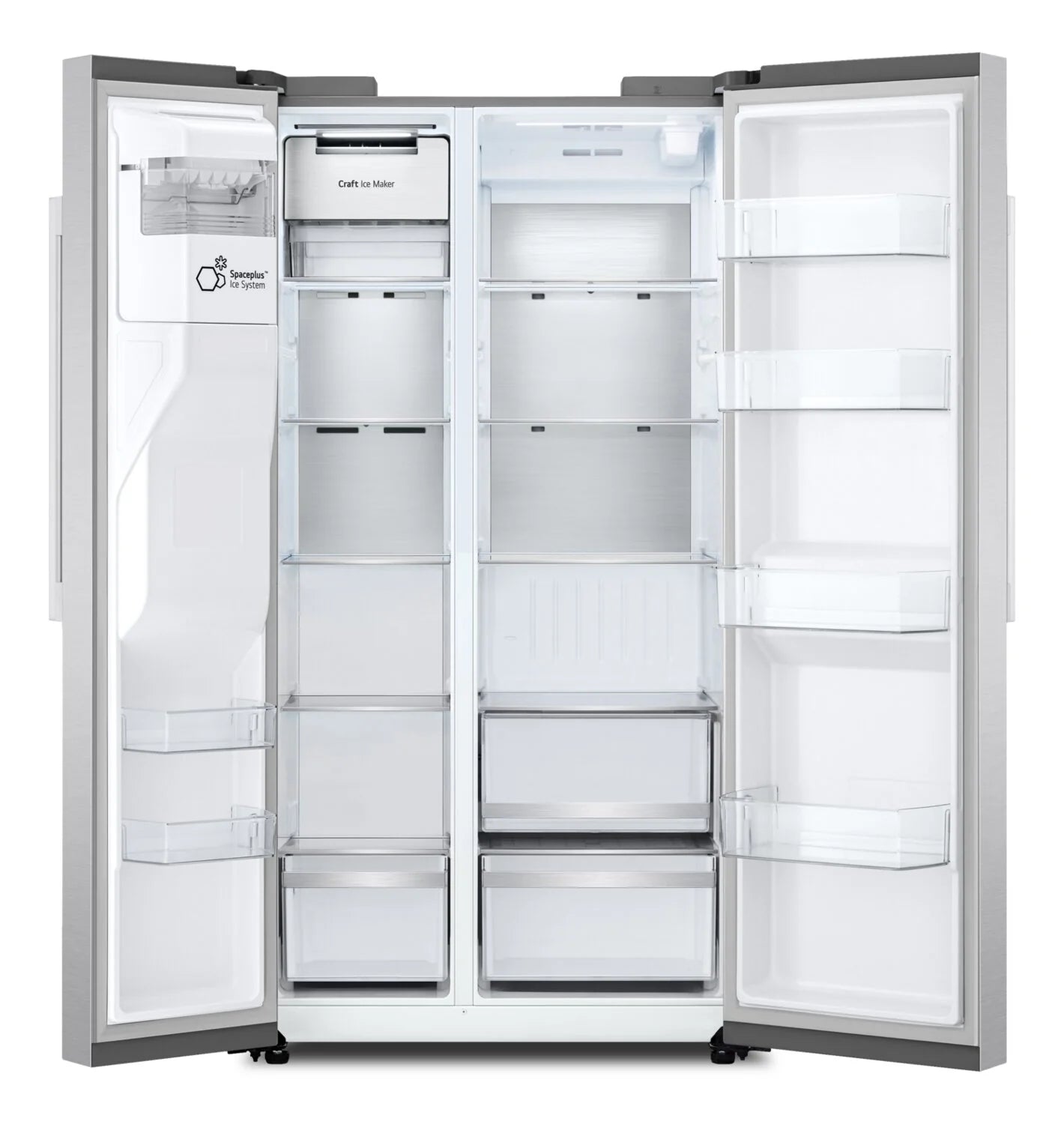 Keep your kitchen organized, stylish and fully stocked with this LG side by side refrigerator. Designed with a sleek, fingerprint-resistant stainless-steel finish, this fridge offers plenty of room for fresh and frozen favourites. The Dual Ice Maker with Craft Ice® keeps drinks perfectly chilled, while the external dispenser delivers water and ice at the touch of a button. Smart ThinQ® technology makes it easy to manage settings from your phone and the spacious interior with adjustable storage ensures everything has its place.