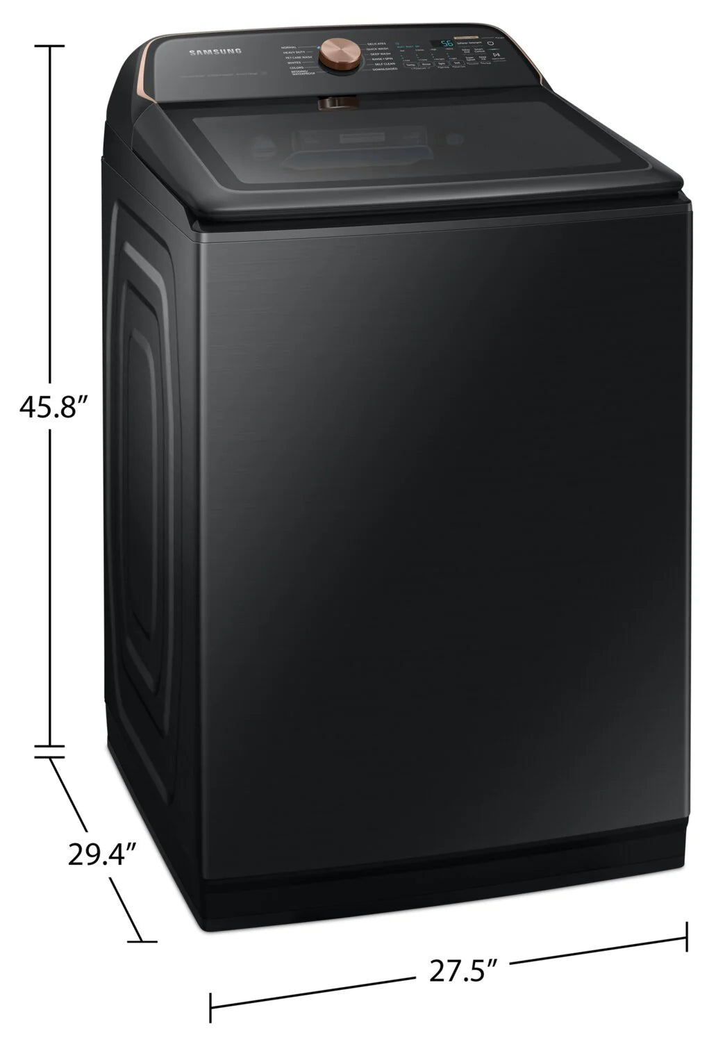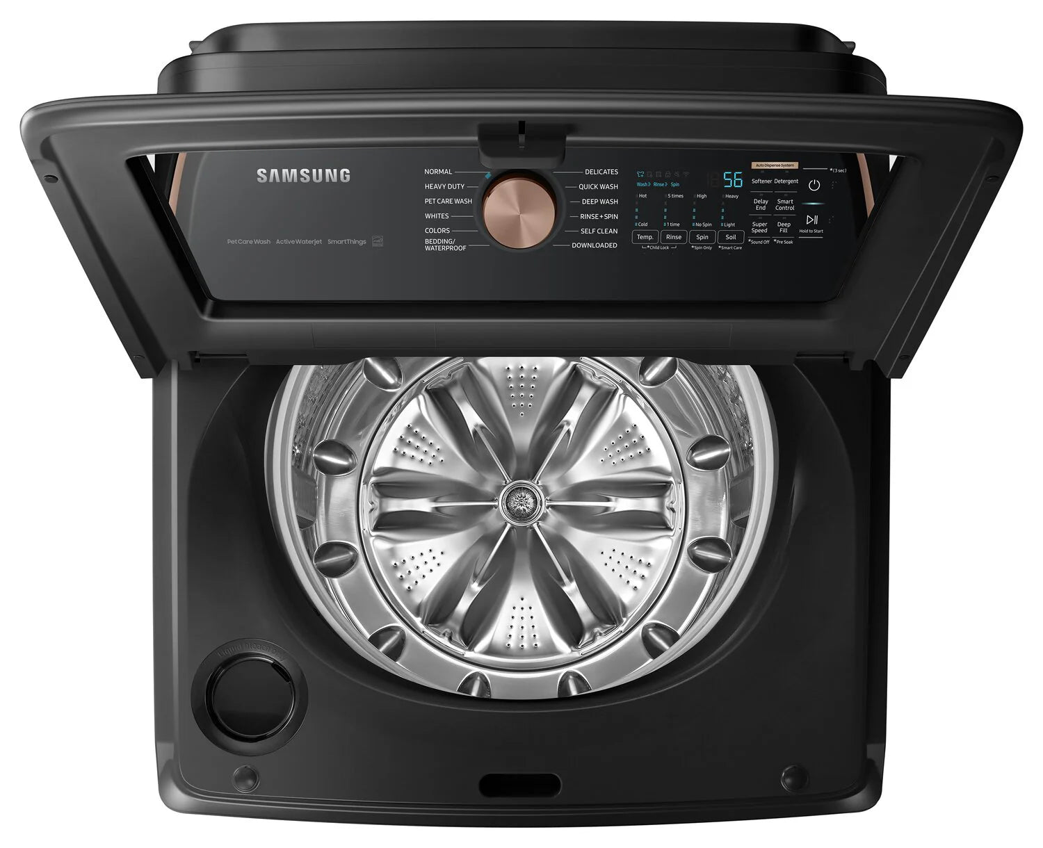 Auto Dispense: Fill your detergent drawer with up to 12 loads of detergent and softener, and the washer will accurately dispense the right amount of cleaning solution for an optimal wash, every time. Large Capacity: Thanks to a large capacity, enjoy running fewer loads for less time in the laundry room and more time doing the things you love. Pet Care Solution: The Pet Care Wash cycle creates dynamic water currents that enable better stain and allergen removal while loosening hair to be trapped by dual pet hair filters. Super Speed 2.0: Wash a full load of laundry in just 28 minutes, without sacrificing cleaning performance. Pre-Treat with Active Water Jet: The built-in water faucet lets you pre-treat heavily soiled or stained garments with the press of a button – scrub clothing right in your washer, no sink needed. Stainless Steel Pulsator: The pulsator’s premium material and design is more durable and scratch resistant. Self-Clean: Trust in the cleanliness of your appliance with Self-Clean technology, which works to eliminate bacteria that can form in a washer drum over time. Plus, it will notify you every 20 wash cycles when it’s time for a cleaning. Wi-Fi Connectivity: With built-in Wi-Fi connectivity, you can receive end of cycle alerts, remotely start or stop the washing, schedule cycles on your time and more right from your smartphone with the SmartThings app. SmartThings Energy: SmartThings Energy provides energy efficiency tips. Plus, it monitors your washer’s energy consumption in real time and alerts you if your monthly targets might be exceeded. Easy Troubleshooting with Smart Care: Samsung’s Smart Care app interacts with the washer to perform an immediate diagnosis and offer quick solutions right to your mobile device. |